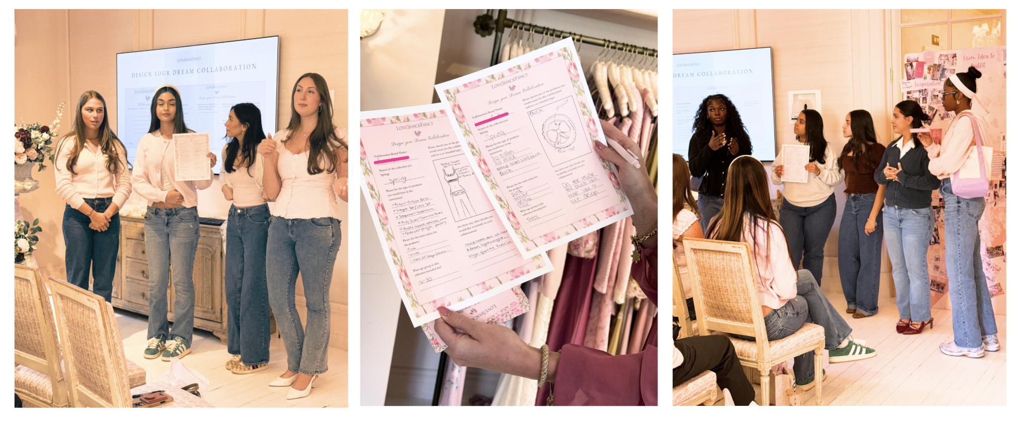 Returning to their seats after lightning-fast break-out sessions, groups of girls began to pitch collaboration ideas directly to LoveShackFancy execs - all of whom glanced delightedly at each other as they nodded with their chins toward the front of the room.