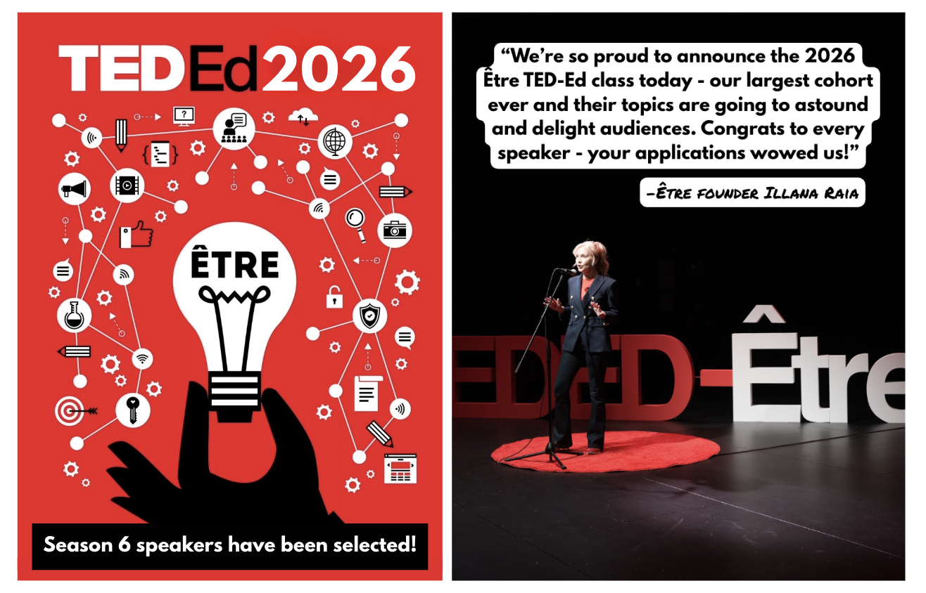 Along with the Être TED-Ed team (cue the clapping for Executive Producer Elizabeth O'Connell, Chief EA Brittany Land, storytelling and stage mentor Corey Ruzicano and keynote coach and actor Michelle Anne Johnson, MBA), I am thrilled to announce the start of the 2026 Être TED-Ed season!